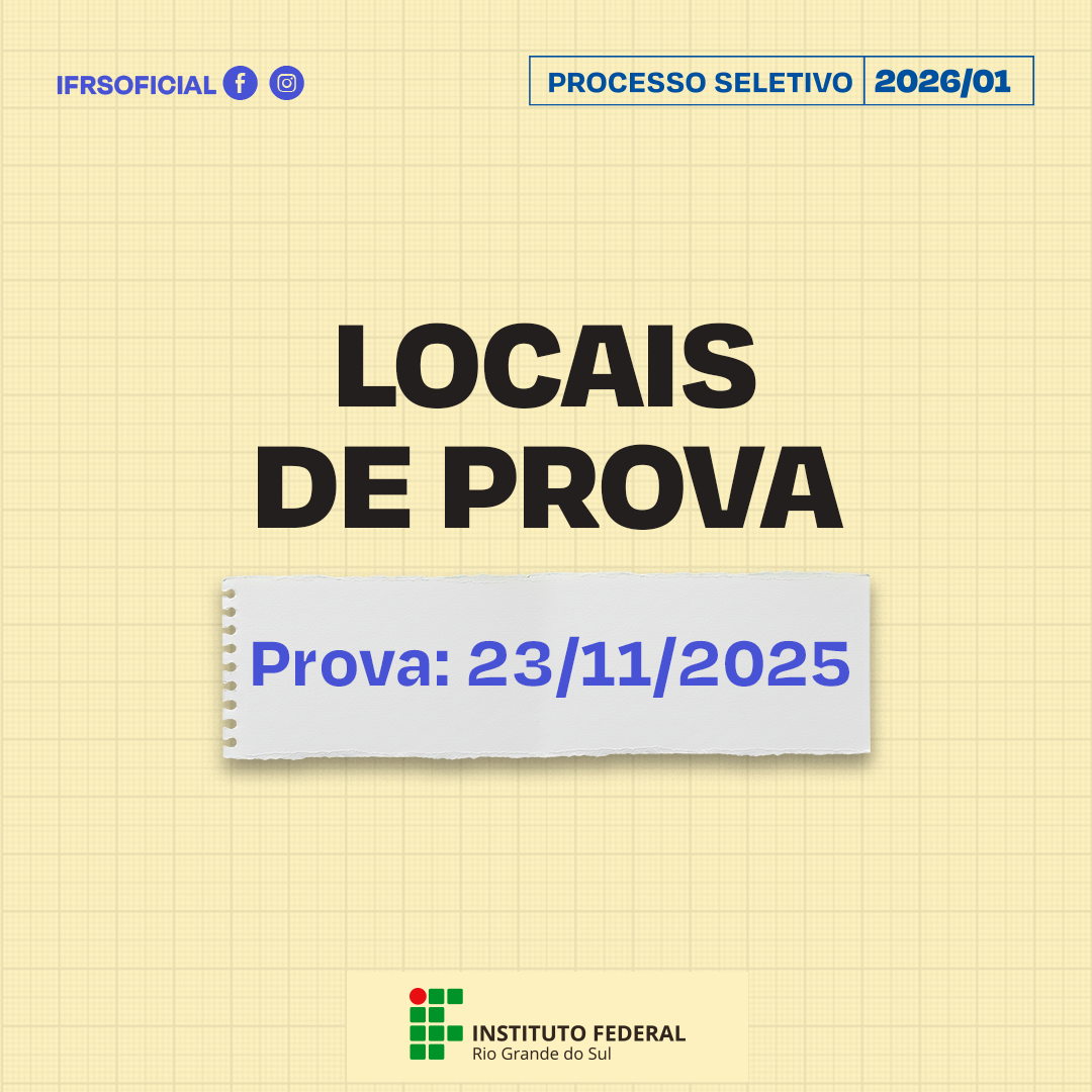 As provas ocorrerão no domingo, 23 de novembro de 2025, no turno da tarde para os Técnicos Subsequentes e Superiores de graduação Os locais de realização das provas do Processo Seletivo de...