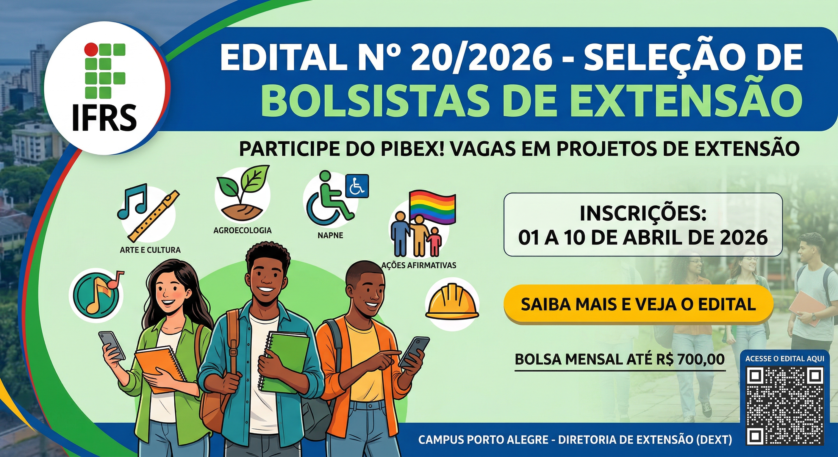 IFRS Campus Porto Alegre abre seleção de bolsistas para projetos de extensão 2026