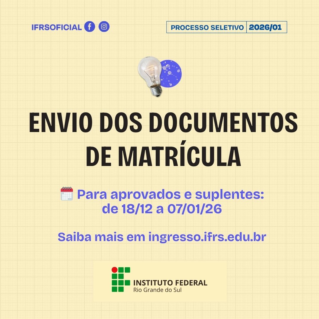 Os candidatos aprovados (classificados em primeira chamada) e também os suplentes do Processo Seletivo de Estudantes 2026/01 do Instituto Federal de Educação, Ciência e Tecnologia do Rio...