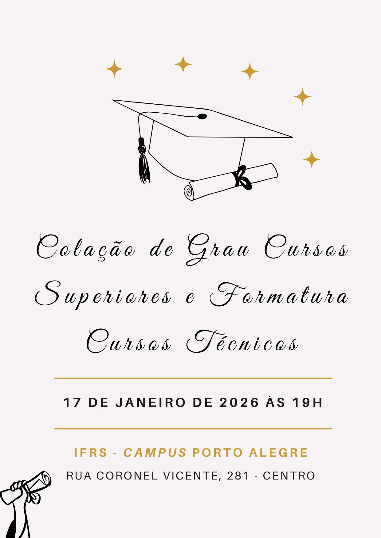Cerimônia de Colação de Grau e Formatura ocorrerá em 17 de janeiro