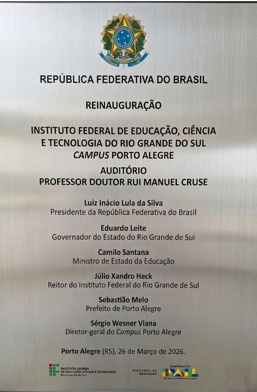 O IFRS - Campus Porto Alegre celebrou, no último dia 26 de março de 2026, a reinauguração do Auditório Professor Doutor Rui Manuel Cruse, localizado no térreo da Torre Norte. O espaço, que...