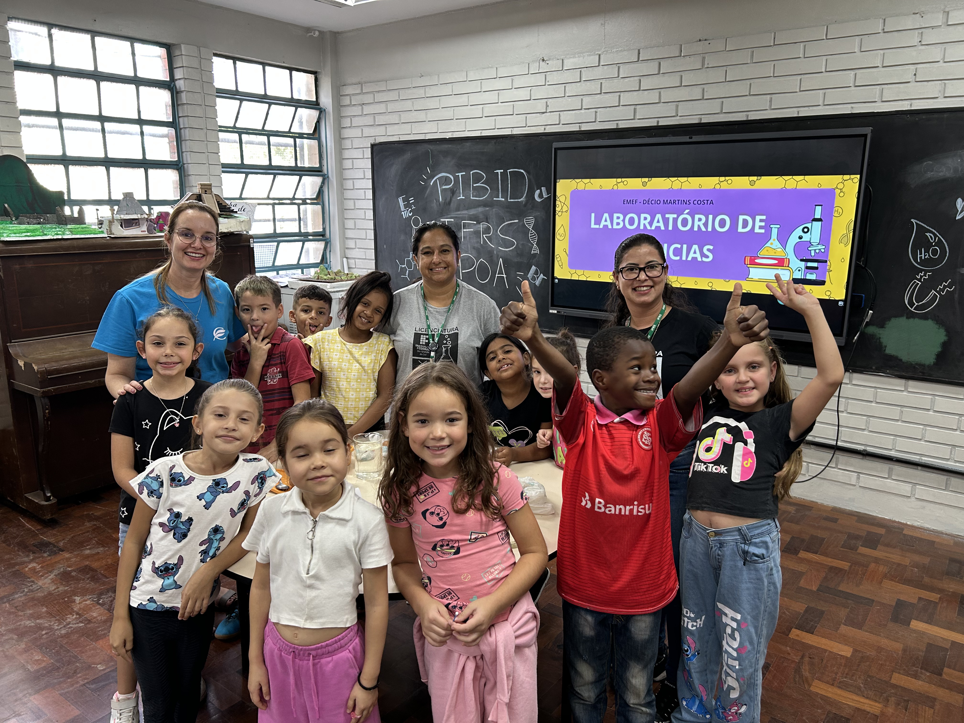 O grupo de oito acadêmicos do curso de Licenciatura em Ciências da Natureza: Biologia e Química (LCN) do Campus Porto Alegre, integrantes do Programa Institucional de Bolsa de Iniciação à Docência (PIBID), tem implementado, desde novembro de 2024, diversas ações pedagógicas e de iniciação científica na Escola Municipal de Ensino Fundamental Décio Martins Costa, situada no bairro Sarandi, na Zona Norte da capital.
