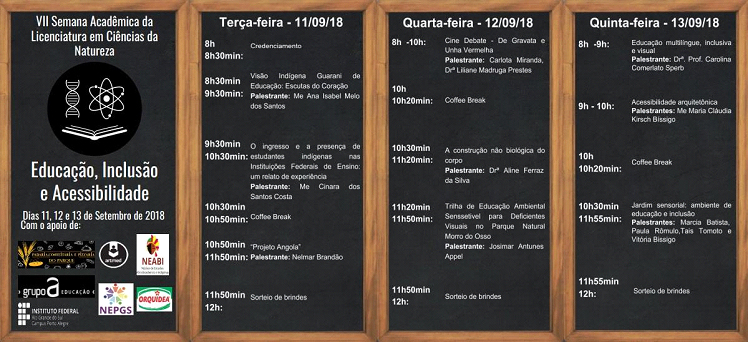 Organizada pelos discentes do Curso de Licenciatura em Ciências da Natureza, a semana traz como tema Educação, inclusão e acessibilidade