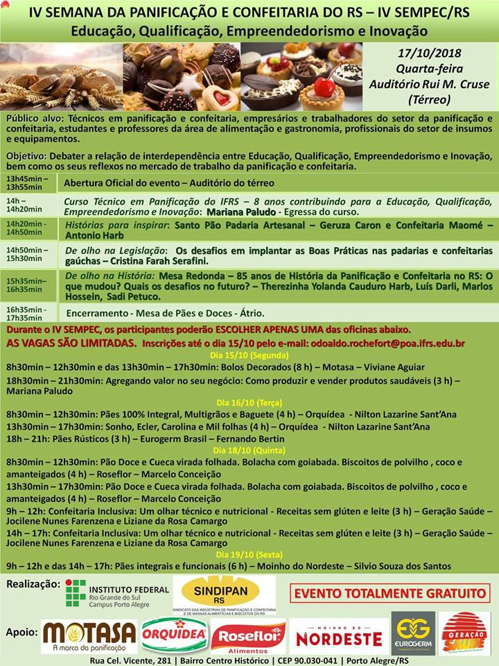 Entre os dias 21 e 23 de maio, o IFRS - Campus Porto Alegre participará da Sulserve - Feira de Padarias, Gastronomia e Hotelaria, que acontece em Novo Hamburgo/RS, na qual é mais uma...