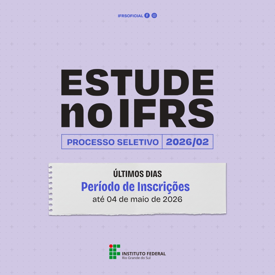 O Instituto Federal de Educação, Ciência e Tecnologia do Rio Grande do Sul (IFRS) abriu inscrições para o Processo Seletivo de estudantes 2026/02, com ingresso no segundo semestre de...