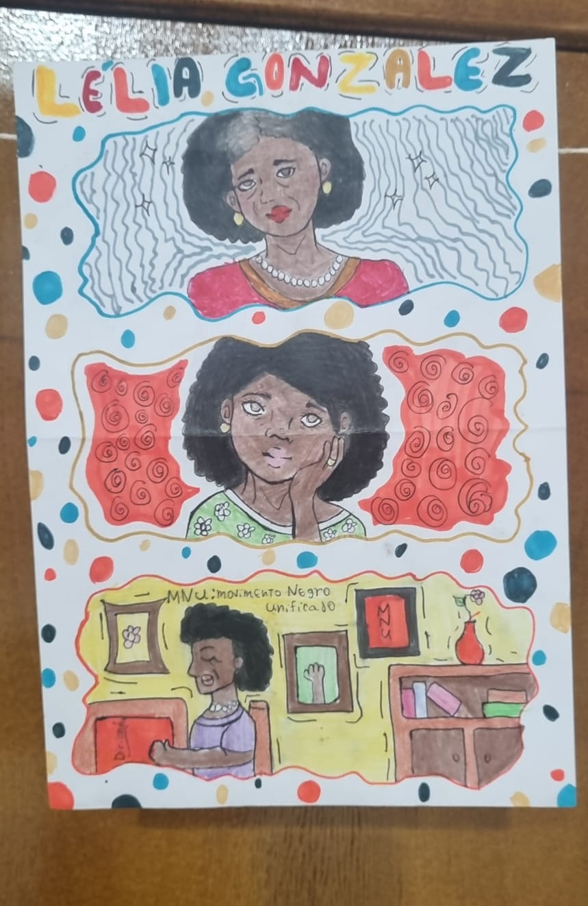 Por fim, os alunos foram desafiados a elaborar suas próprias tirinhas com base no trabalho sobre personalidades negras brasileiras que elaboraram com a Profa. Helen Scorsatto Ortiz de Sociologia onde cada aluna e cada aluno pesquisou sobre uma personalidade negra brasileira. Na oficina de Cartum os alunos e alunas criaram rascunhos dos cartuns e o resultado final já está em exposição no Átrio do Campus Porto Alegre. Convidamos todos e todas a prestigiar.