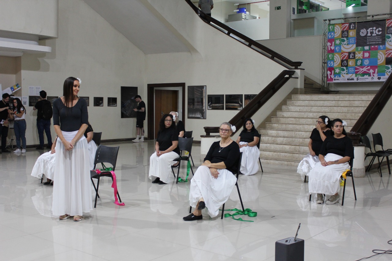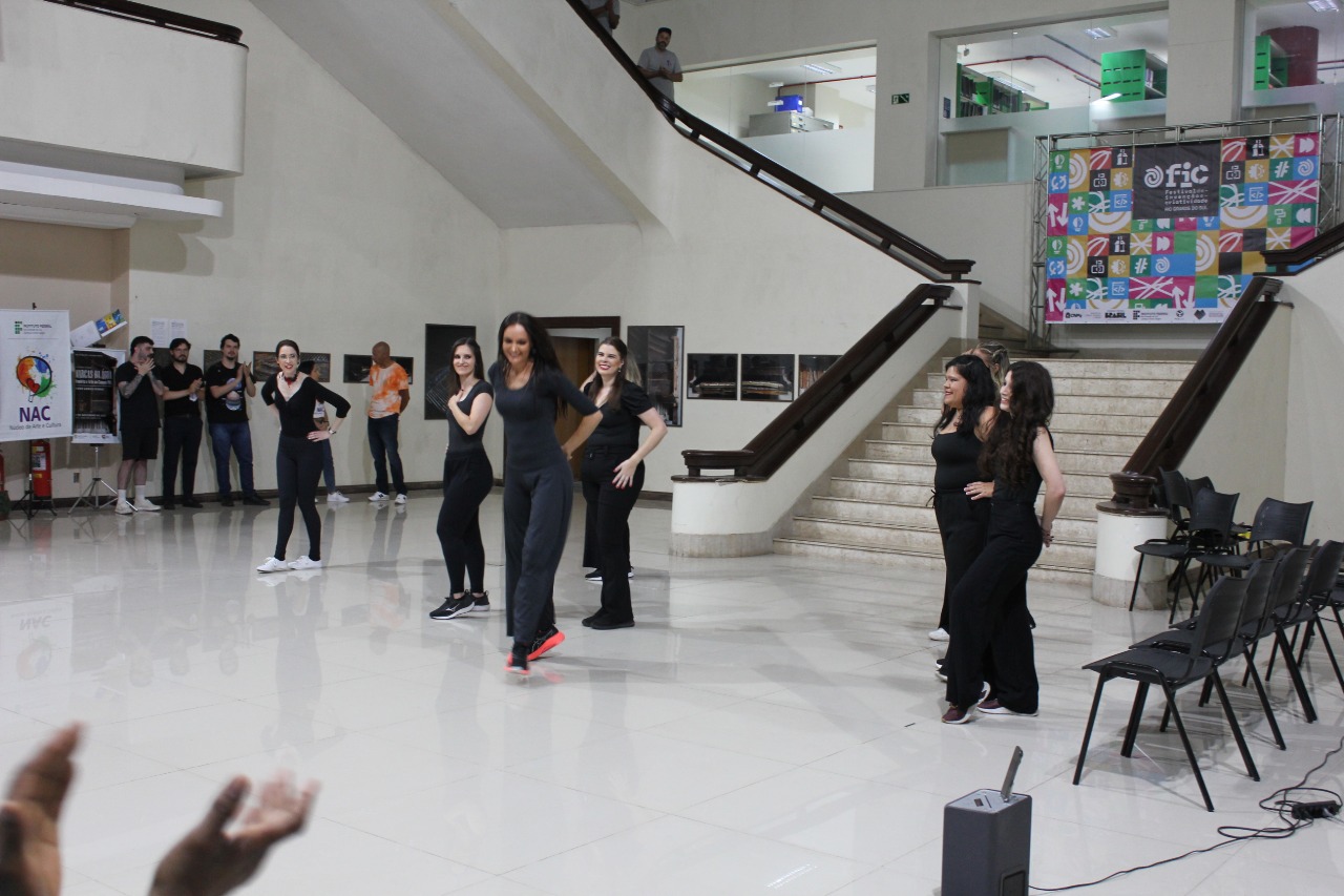 No final da tarde, o átrio do Campus recebeu uma apresentação de dança e a abertura da Exposição Fotográfica Marcas da Água: Memória e Arte no Campus POA.