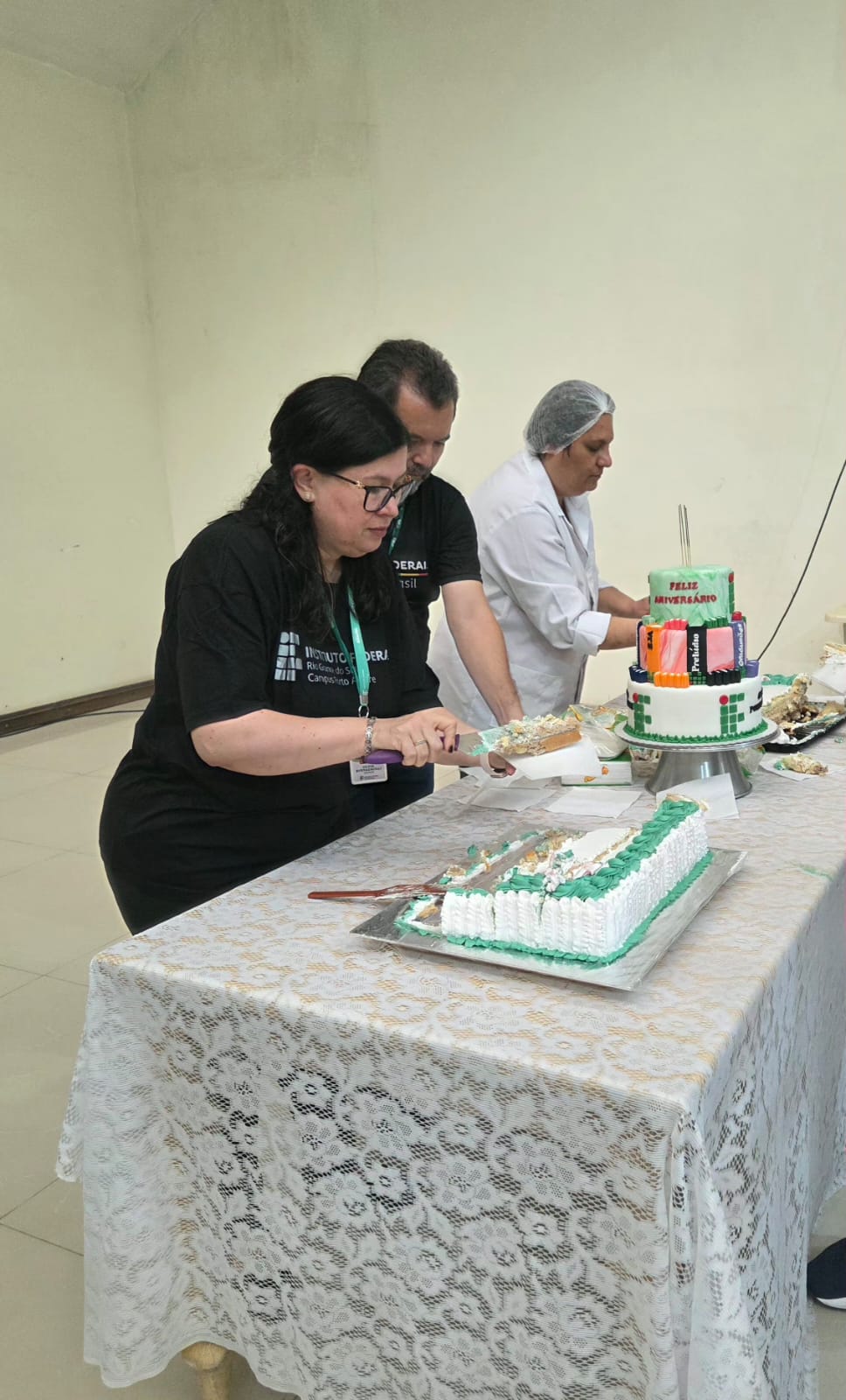 O Campus Porto Alegre celebrou seu aniversário no dia 27 de novembro, com momentos de confraternização ao longo dos três turnos. Estudantes, servidores e colaboradores compartilharam os bolos preparados especialmente para a data, pela Técnica em Panificação, Renata Martins e a colaboradora, Cintia Guterres.
