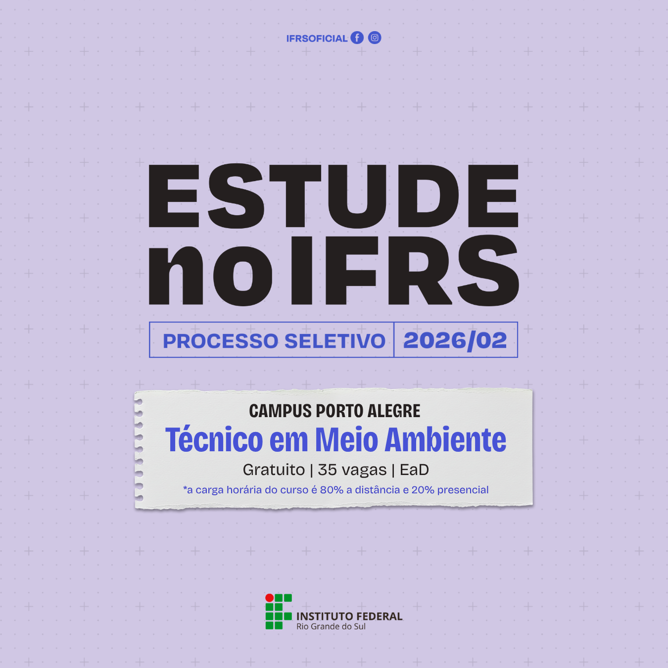 Nesta terça-feira, 14 de abril de 2026, foi publicado o Edital Campus Porto Alegre Nº 22/2026 para transferência de curso. Há 33 (trinta e três) vagas para cursos técnicos subsequentes ao...