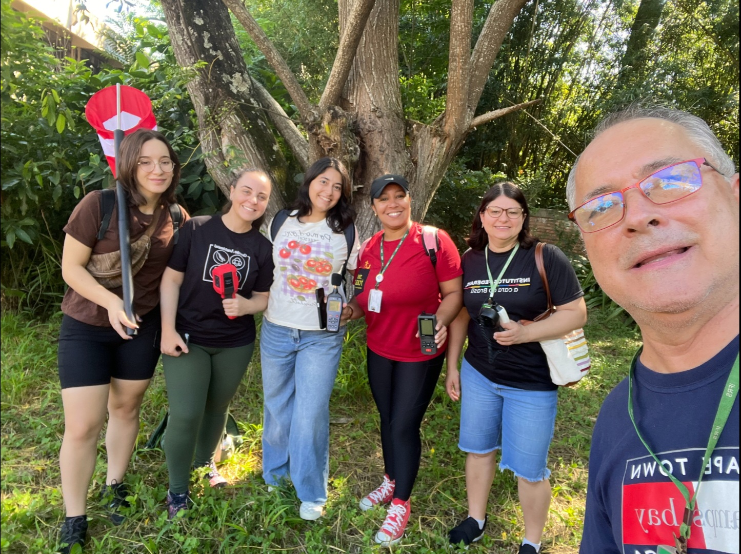 As fotos anexas mostram o grupo no local de apresentação no Tribunal de Justiça, e na microfloresta da escola Alberto Torres.