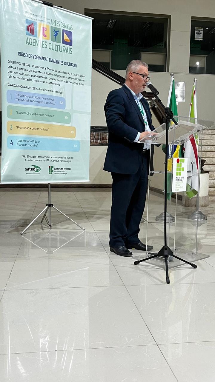 No dia 24 de março, às 19h, o átrio do Campus Porto Alegre foi palco do evento de encerramento do Curso de Formação em Agentes Culturais. A atividade marcou a conclusão da formação e contou com a entrega de certificados aos participantes.